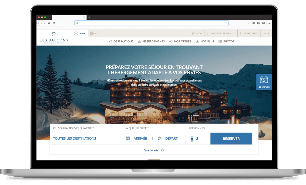 Dans le cadre d’un repositionnement de la marque, le groupe hôtelier Les Balcons souhaitait refondre son site de réservation, tant au niveau de son image que de son tunnel d’achat. L’idée étant d’offrir une expérience utilisateur la plus fluide et agréable possible.